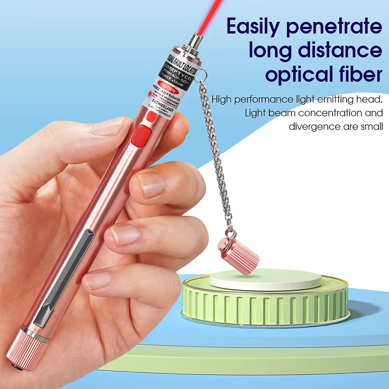 The COMPTYCO 5-50mw Rechargeable Fiber Test Pen is a portable tool for fiber optic fault detection. It uses a red laser light source to quickly locate issues such as breaks, bends, or poor connections in fiber cables. With a detection range of 5-50km and various power options, it is suitable for fiber maintenance and testing in different scenarios.